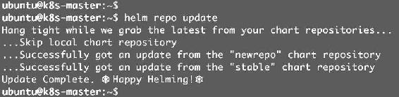 (8)若以后仓库添加了新的chart,则需要用helm repo update更新本地的index,如图11-55所示。