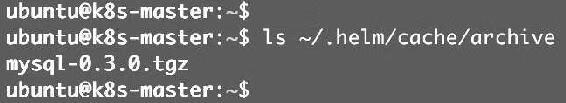 以前面MySQL chart为例。一旦安装了某个chart,我们就可以在~/.helm/cache/archive中找到chart的tar包,如图11-19所示。
