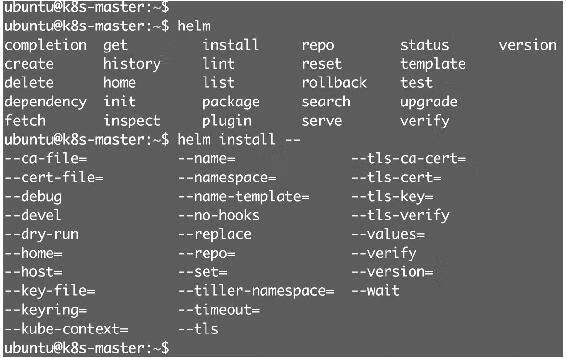 重新登录后就可以通过Tab键补全helm子命令和参数了,如图11-8所示。