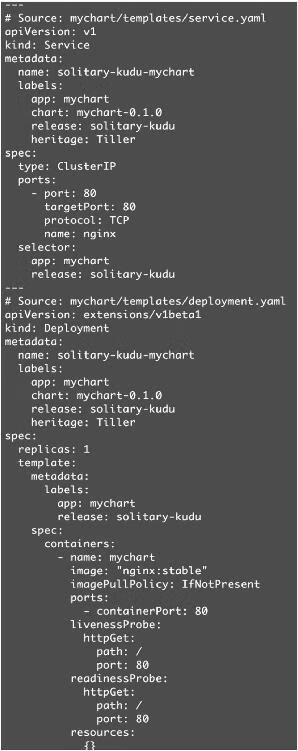 chart将这些文件放置在预定义的目录结构中,通常整个chart被打成tar包,而且标注上版本信息,便于Helm部署。