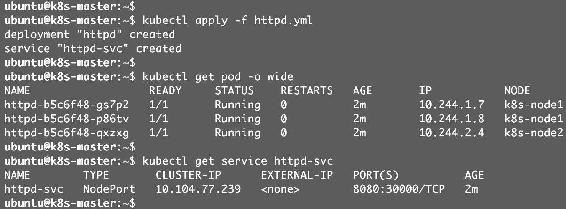 httpd有三个副本,通过NodePort类型的Service对外提供服务。部署应用,如图12-5所示。