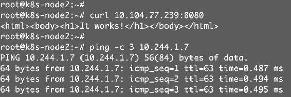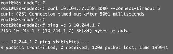 (2)集群节点已经不能访问Service,也Ping不到副本Pod,如图12-13所示。