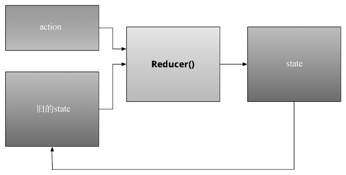 ●通过调用一个叫作reducer的函数来结合旧的state和action会创建出新的state(如图12-1所示)。