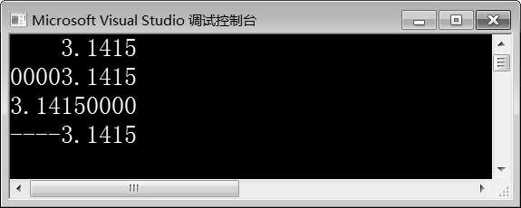 double f = 3.1415926; cout<<"默认输出 :"<<f<<endl; cout<<"精度控制"<<setprecision(7) <<setiosflags(ios::fixed)<<f<<endl;