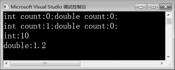 由图6-1可知,当调用add()函数传入int类型参数1和2时,参数T被替换成int,得到结果为3;当传入double类型参数1.2和3.4时,参数T被替换成double类型,得到结果为4.6。这就避免了为int类型数据定义一个求和函数,再为double类型数据定义一个求和函数的问题,实现了代码复用。