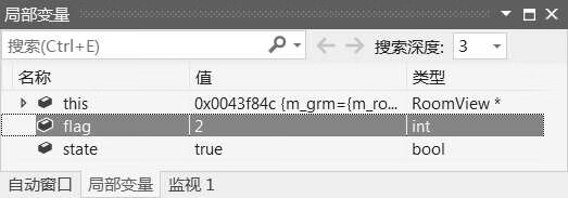 Visual Studio 2019可以通过鼠标悬停的方式查看变量的值,即鼠标指向变量,变量就会显示出其值。例如,run()函数中定义了变量flag,下面以查看变量flag的值为例演示Visual Studio 2019查看变量的方法。在图11-20中,程序还未执行第82行代码,此时变量flag的值为-1,将鼠标悬停在变量flag上面,Visual Studio 2019会显示出flag的值,如图11-21所示。