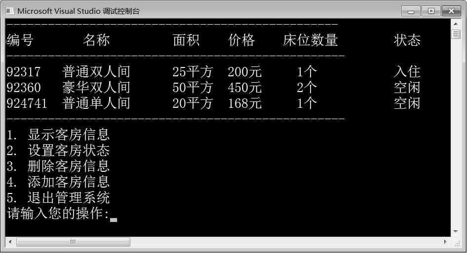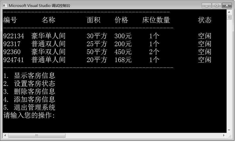添加客房之后,再次输入数字1,显示客房信息,如图11-9所示。