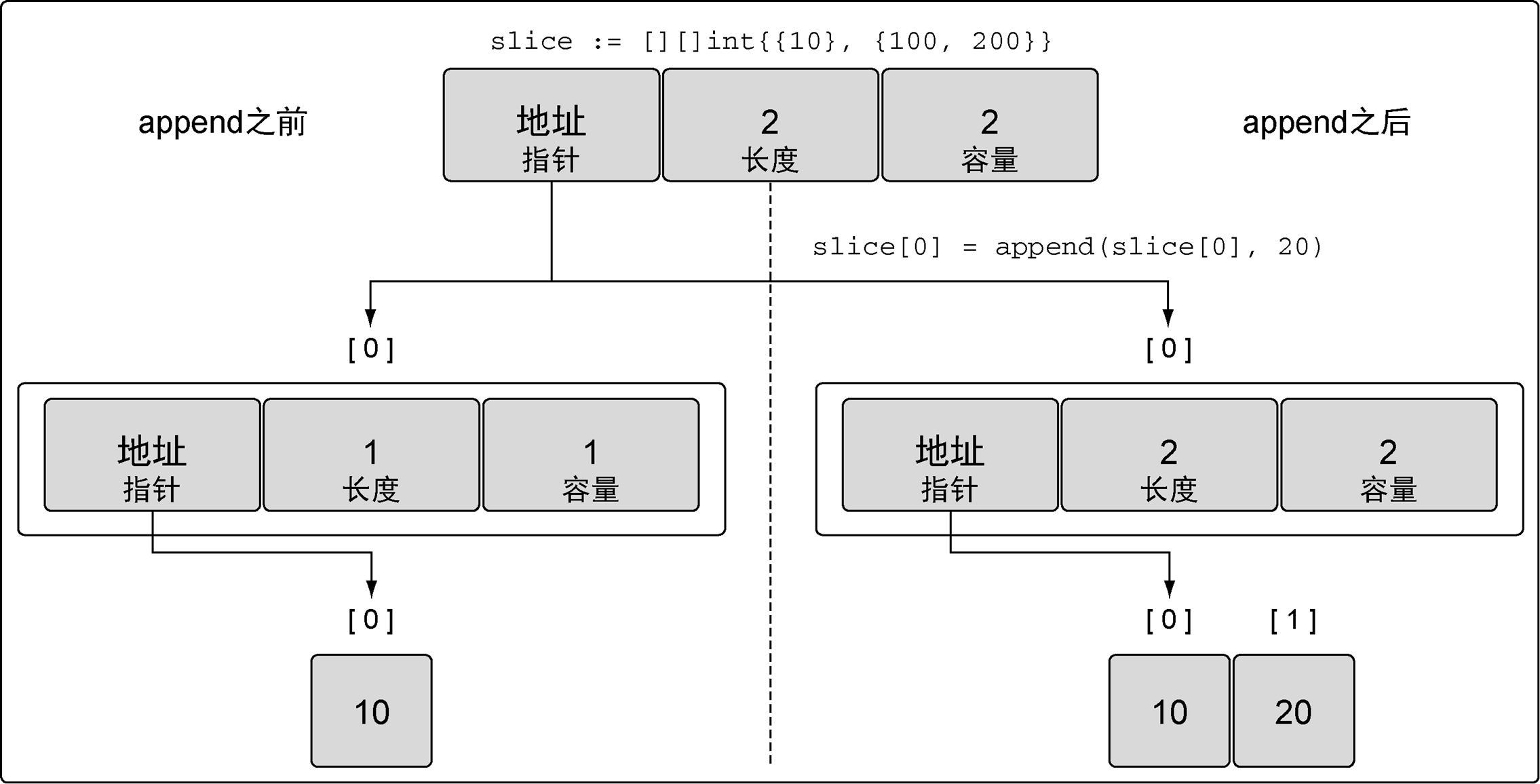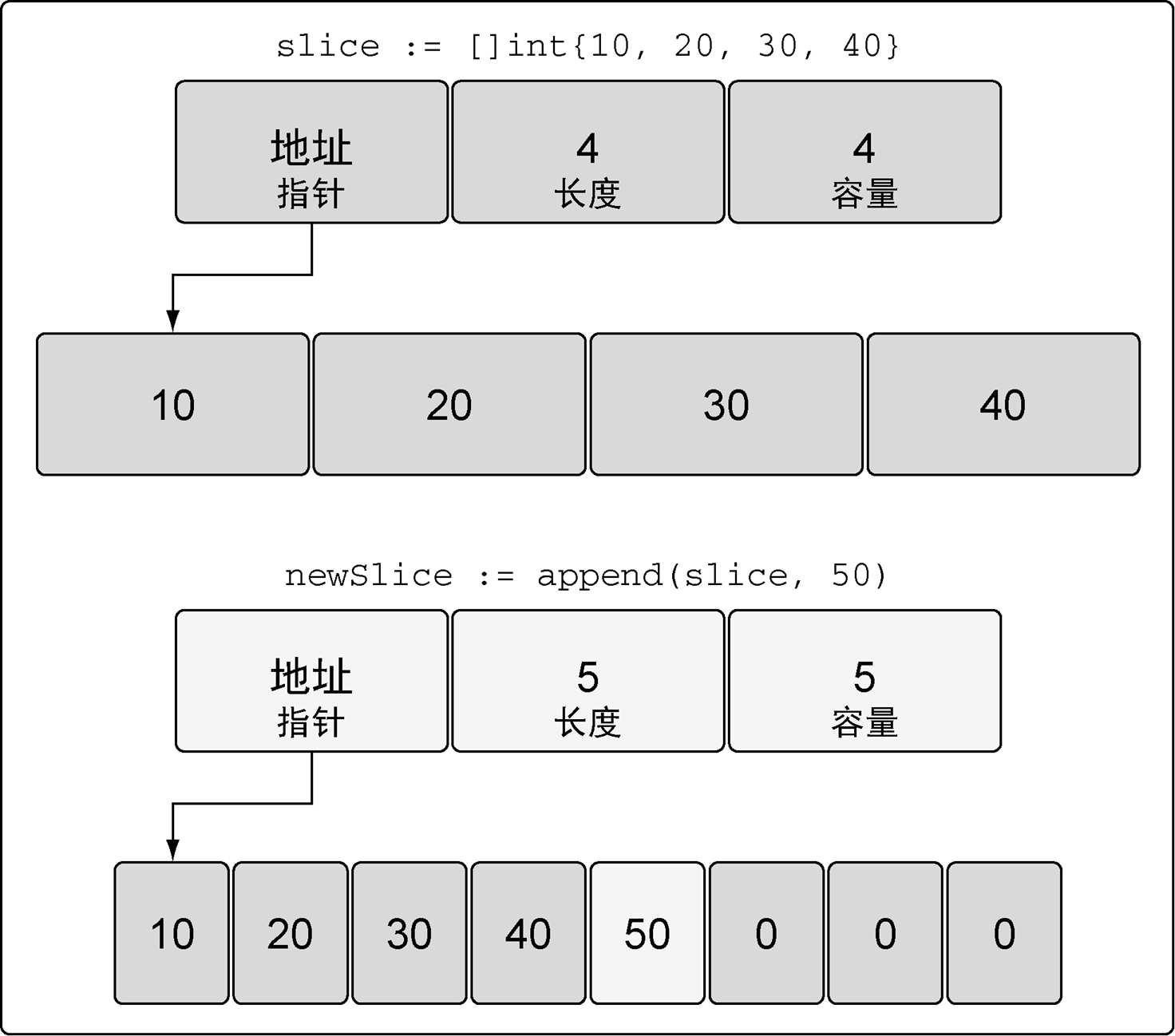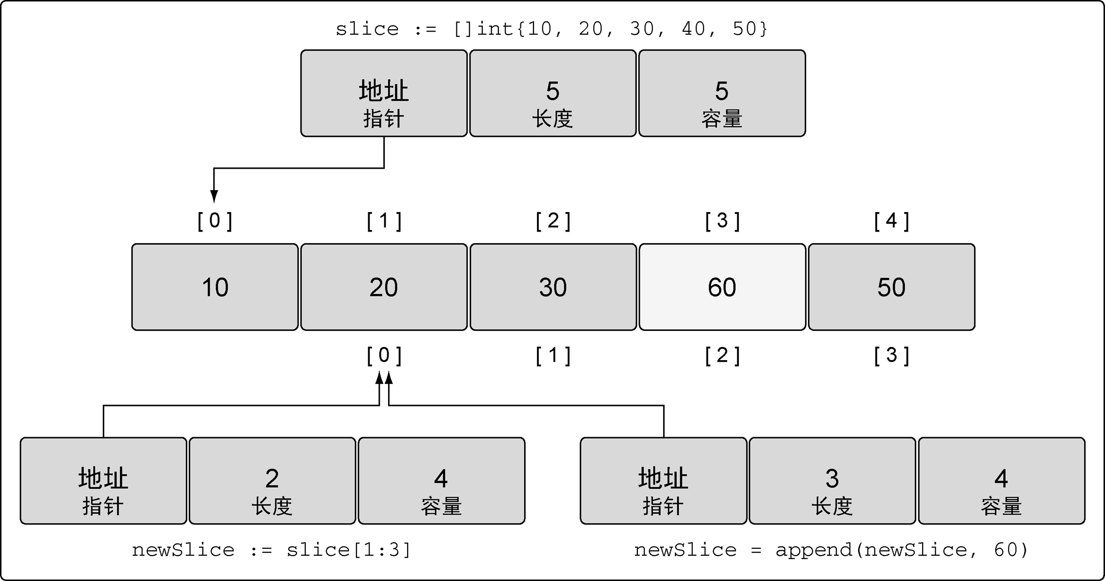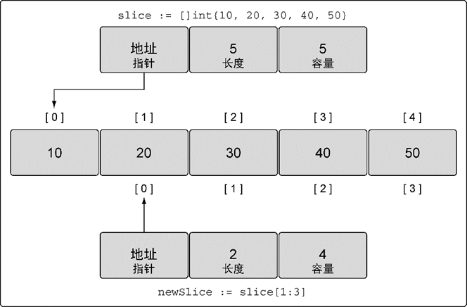 图4-22 函数调用之后两个切片指向同一个底层数组