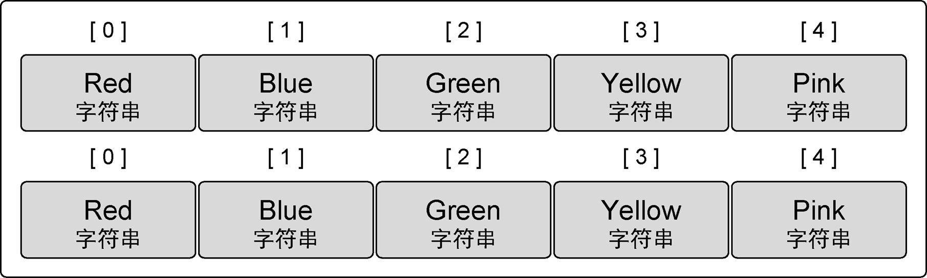 复制之后,两个数组指向同一组字符串,如图4-7所示。