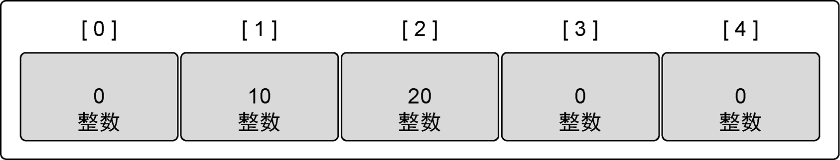 代码清单4-4中声明的数组在声明和初始化后,会和图4-3所展现的一样。