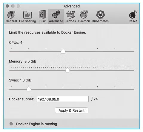 根据实际机器资源情况为Kubernetes配置CPU和内存资源,建议分配4GB或更多内存,如图2-8所示。