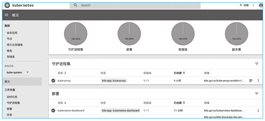 使用Helm安装和配置是将Istio安装到生产环境的推荐安装方式,因为Helm为Istio控制平面和数据平面Sidecar提供了丰富的配置。首先要在Kubernetes中安装Helm。可以根据Helm的官方文档安装,地址为https://github.com/helm/helm/blob/master/docs/install.md,安装好的Kubernetes如图2-10所示。