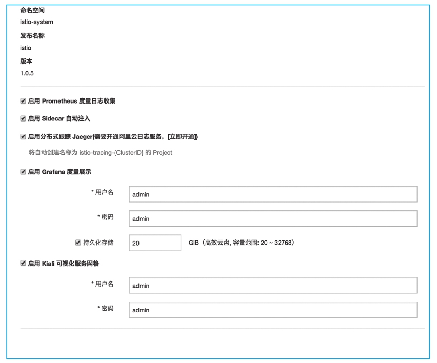 图2-13 Istio参数配置