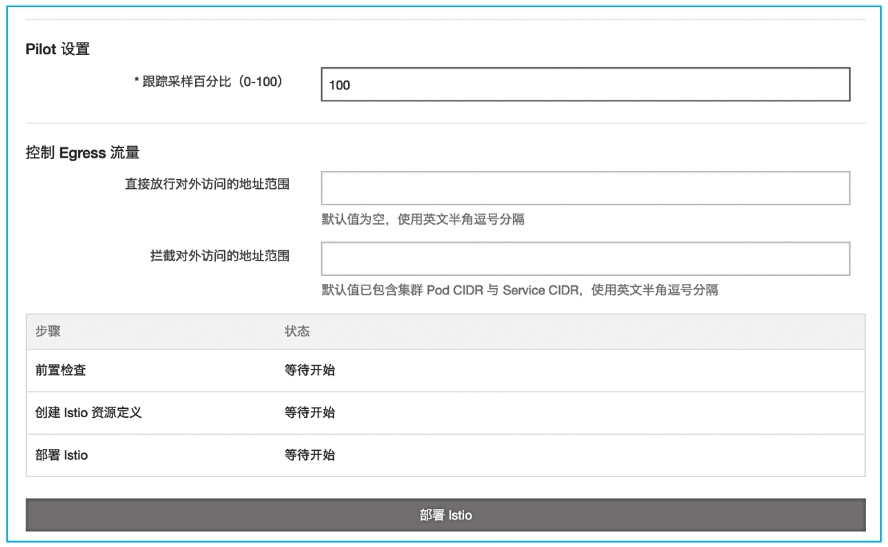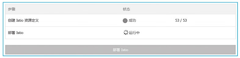 4)单击部署Istio,启动部署。在部署页面下方,可实时查看部署进展及状态,如图2-14所示。