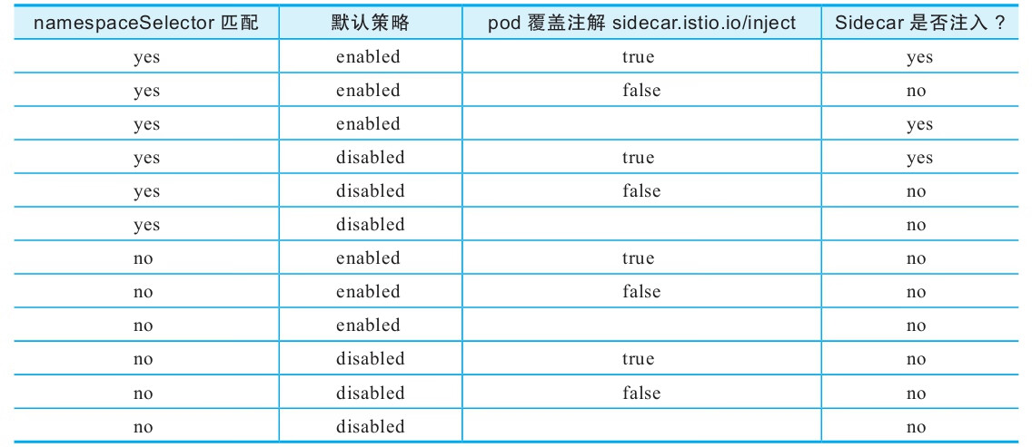 根据上述启用Sidecar自动注入的规则,enableNamespacesByDefault设置为false时,命名空间中设置了标签istio-injection并且值为enabled,才会启用Sidecar自动注入。