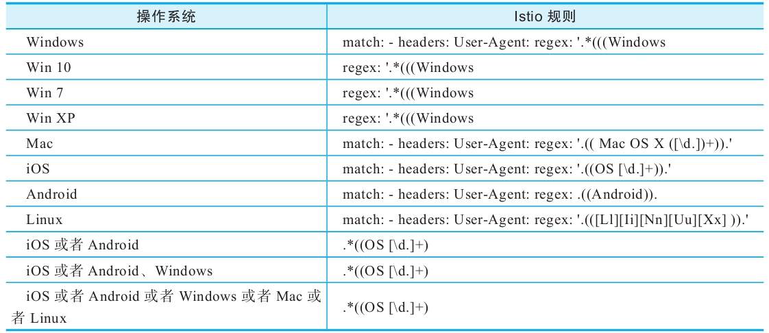 针对来自不同操作系统的请求规则定义参见表4-2。