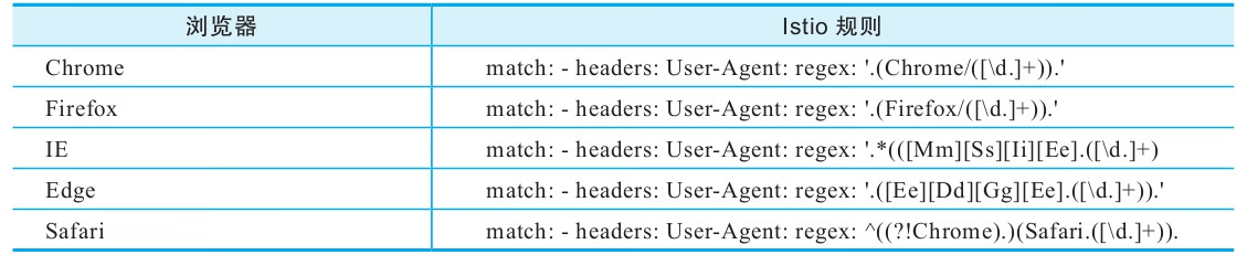 针对来自不同浏览器的请求规则定义参见表4-1。