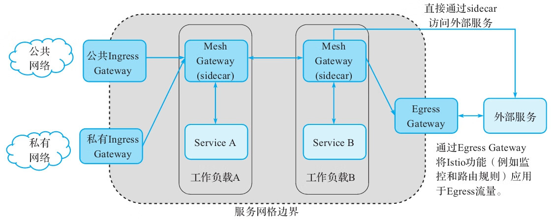 Istio具有入口网关的概念,它扮演网络入口点的角色,负责保护和控制来自集群外部的流量对集群的访问。