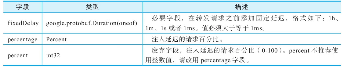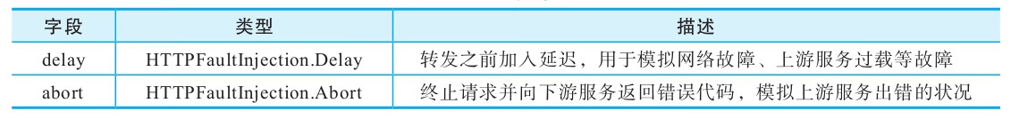 时延故障用于将延迟注入请求转发路径,参见表6-12。