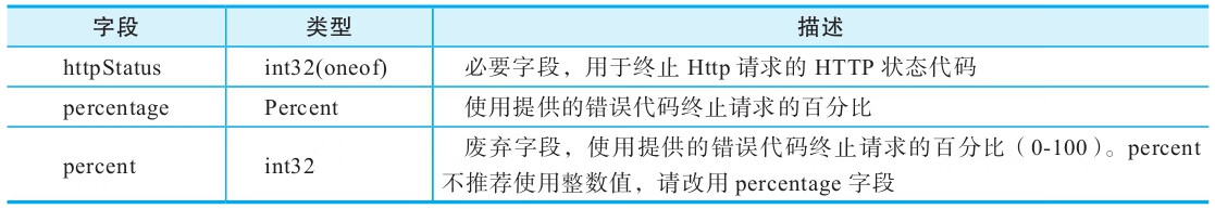 ·中断故障:故障百分比,Http状态码;提前终止请求,并返回预定义的错误码。