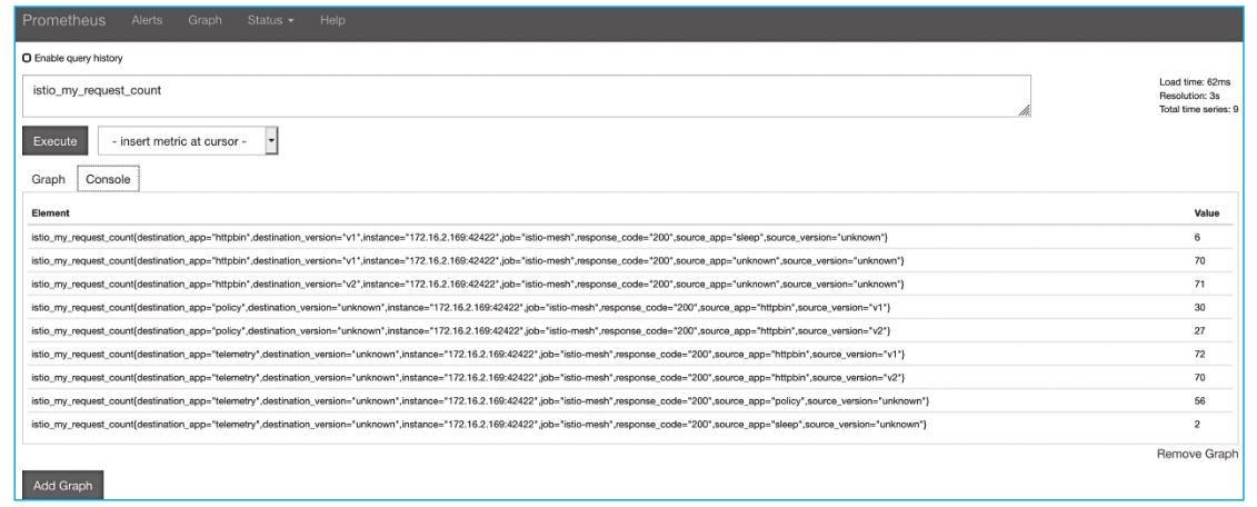 ·istio-telemetry.istio-system:9093:istio-telemetry作业返回所有特定于Mixer的指标。使用此端点监视Mixer本身。
