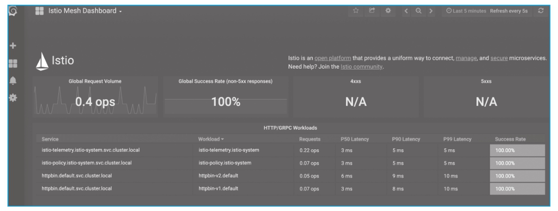 ·网格摘要视图:提供整个网格的全局摘要视图,并在网格中显示HTTP/gRPC和TCP工作负载。
