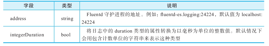 其中,Fluentd适配器可接受的实例类型为kind:logentry,其参数定义如表8-5所示。