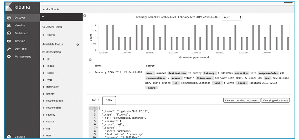现在单击左侧菜单中的发现,开始浏览生成的日志,如图8-10所示。