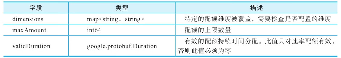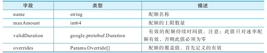 其中类型Quota定义了配额限制和持续时间,具体如表8-7所示。