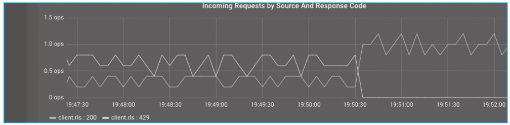 因为destination值为server,限制值为每5秒1次。所以client每秒调用server一次,就会出现如图8-15所示的测试结果。