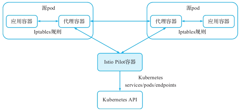 Kubernetes服务未配置正确的协议,如图9-2所示,Istio Pilot通过Kubernetes API获取集群内的服务信息。
