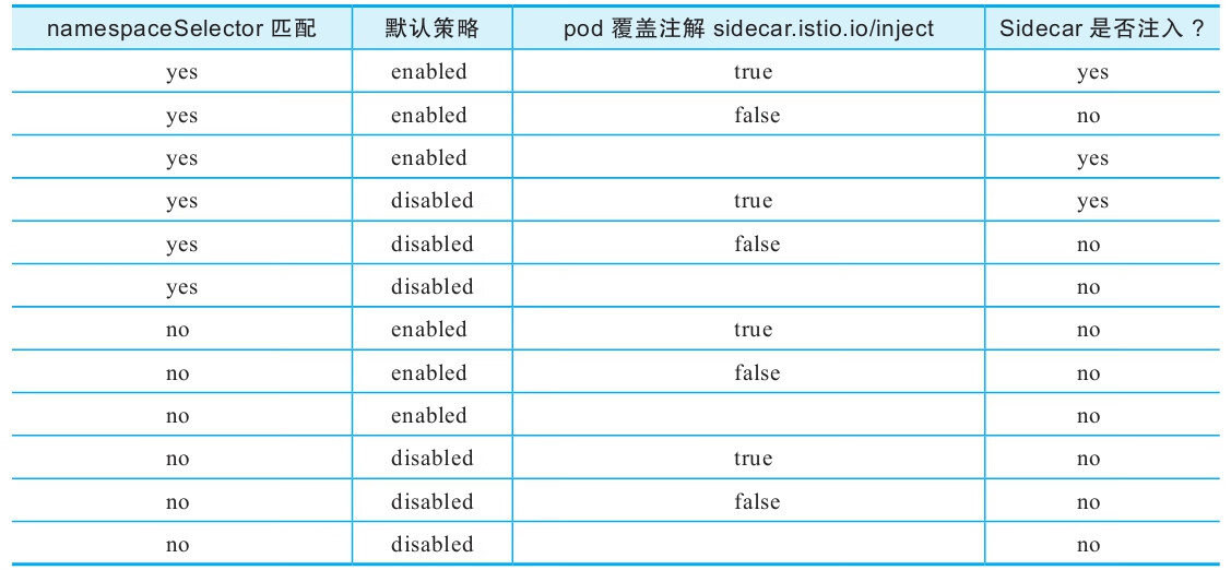 是否进行Sidecar注入取决于三个条件,参见表9-3。