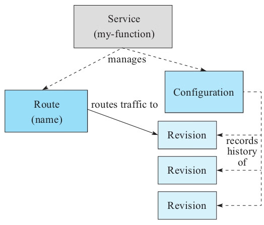 总之,Knative Serving API中的主要资源是由路由、配置、修订和服务构成的,其中: