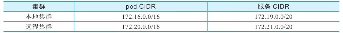 两个Kubernetes集群的pod CIDR范围和服务CIDR范围定义如表12-1所示: