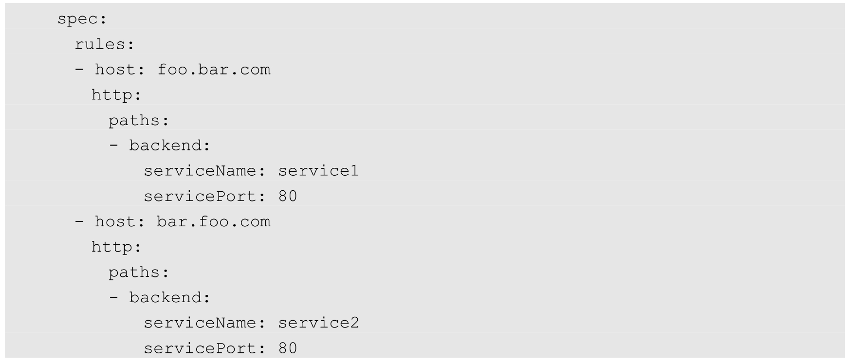 NodePort的确功能强大且通用性强,但也存在一个问题,即每个Service都需要在Node上独占一个端口,而端口又是有限的物理资源,那能不能让多个Service共用一个对外端口呢?这就是后来增加的Ingress资源对象所要解决的问题。在一定程度上,我们可以把Ingress的实现机制理解为基于Nginx的支持虚拟主机的HTTP代理。下面是一个Ingress的实例: