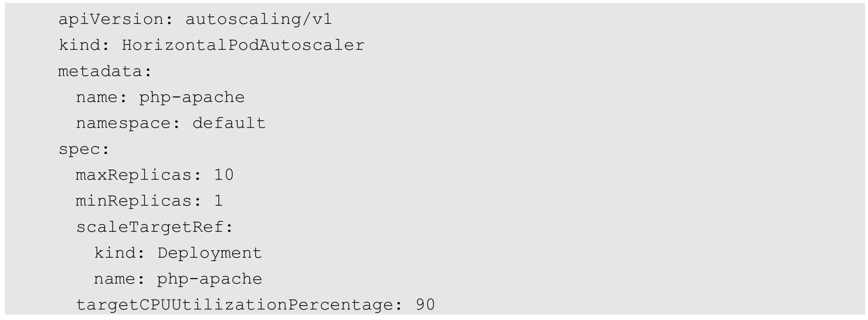 根据上面的定义,我们可以知道这个HPA控制的目标对象是一个名为php-apache的Deployment里的Pod副本,当这些Pod副本的CPU利用率的值超过90%时,会触发自动动态扩容,限定Pod的副本数量为1~10。HPA很强大也比较复杂,我们在后续章节中会继续深入学习。