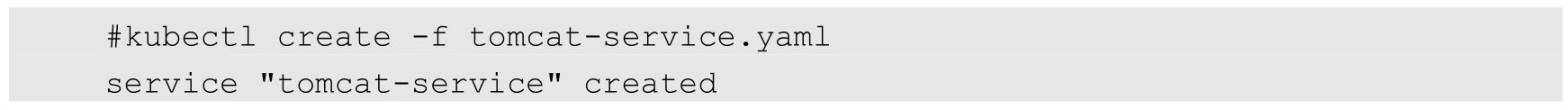 以上代码定义了一个名为tomcat-service的Service,它的服务端口为8080,拥有tier=frontend标签的所有Pod实例都属于它,运行下面的命令进行创建: