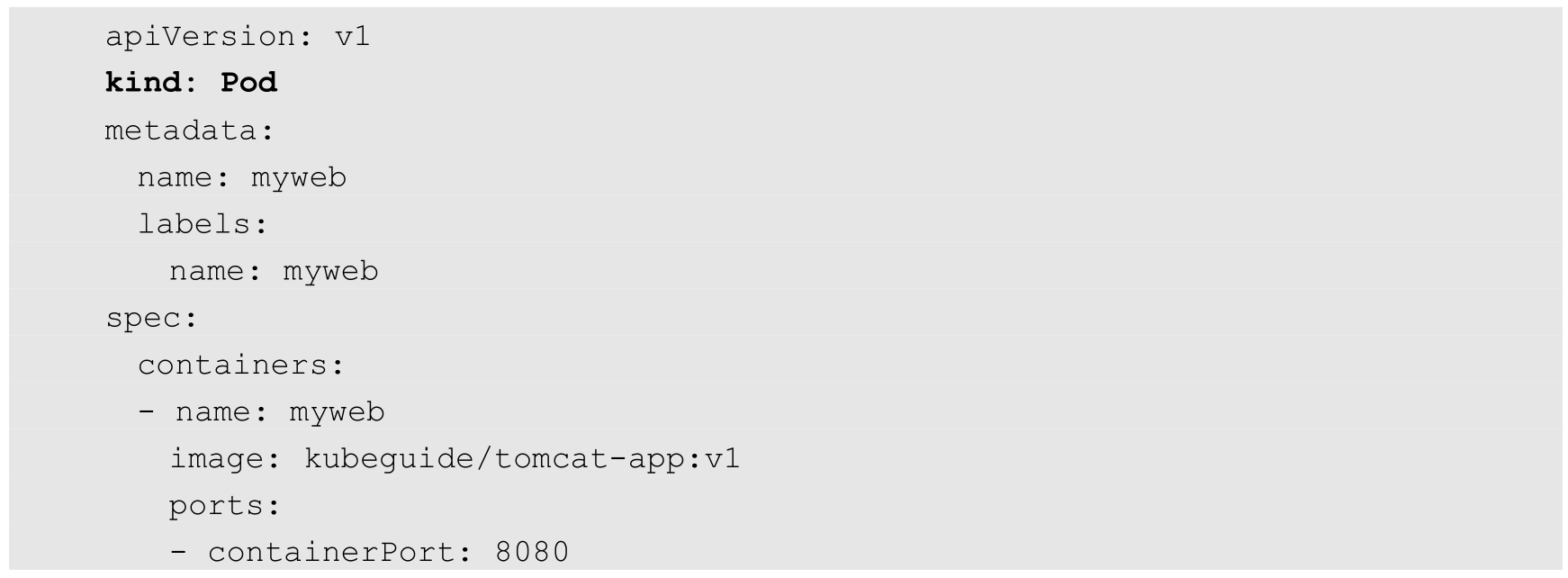下面是我们在之前的Hello World例子里用到的myweb这个Pod的资源定义文件: