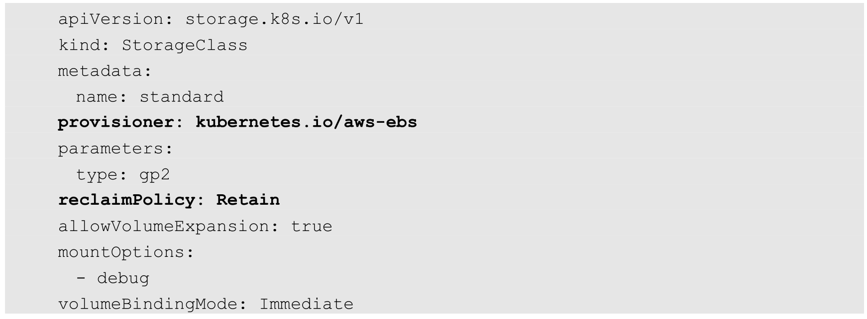 从上面的例子可以看出,StorageClass有几个关键属性:provisioner、parameters和reclaimPolicy,系统在动态创建PV时会用到这几个参数。简单地说,provisioner代表了创建PV的第三方存储插件,parameters是创建PV时的必要参数,reclaimPolicy则表明了PV回收策略,回收策略包括删除或则保留。需要注意的是,StorageClass的名称会在PVC(PV Claim)中出现,下面就是一个典型的PVC定义: