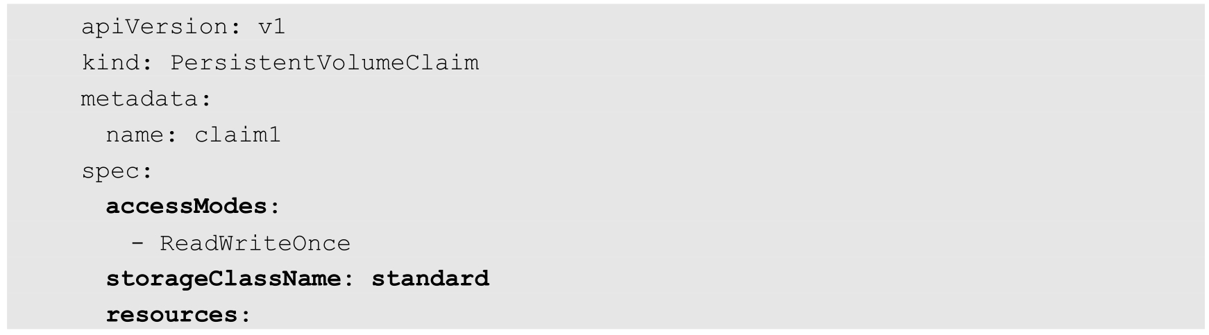 PVC正如其名,表示应用希望申请的PV规格,其中重要的属性包括accessModes(存储访问模式)、storageClassName(用哪种StorageClass来实现动态创建)及resources(存储的具体规格)。