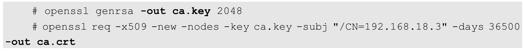 (1)通过openssl工具创建CA证书和私钥文件,命令如下: