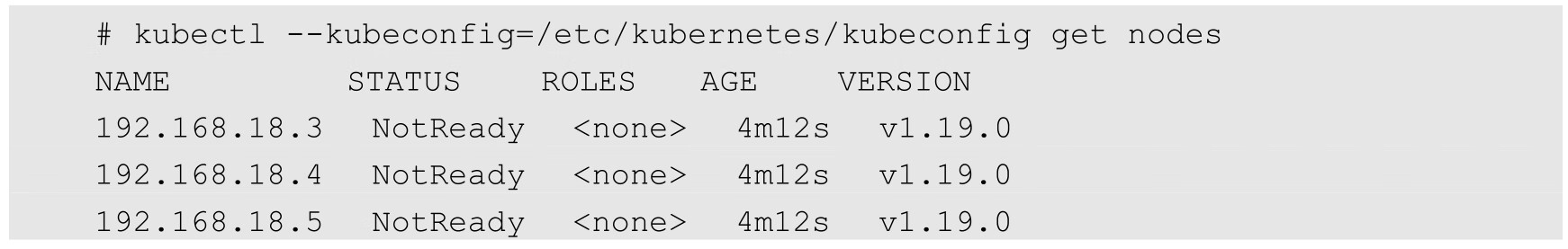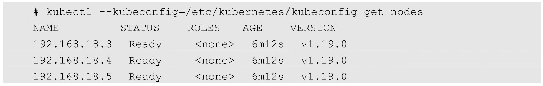 本节以将192.168.18.3、192.168.18.4和192.168.18.5三台主机部署为Node为例进行说明,由于这三台主机都是Master节点,所以最终部署结果为一个包含三个Node节点的Kubernetes集群。