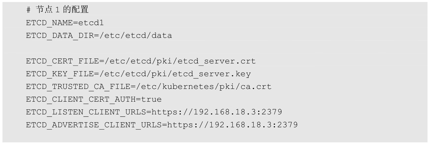 接下来对3个etcd节点进行配置。etcd节点的配置方式包括启动参数、环境变量、配置文件等,本例使用环境变量方式将其配置到/etc/etcd/etcd.conf文件中,供systemd服务读取。