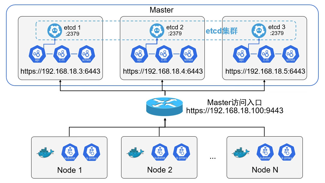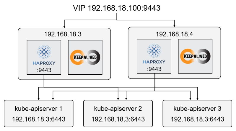 接下来,在3个kube-apiserver服务的前端部署HAProxy和keepalived,使用VIP 192.168.18.100作为Master的唯一入口地址,供客户端访问。