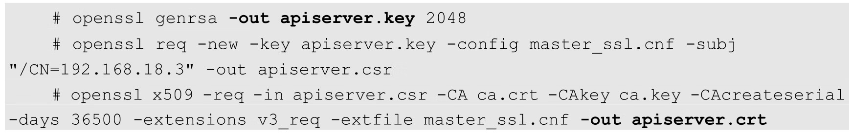 (1)设置kube-apiserver服务需要的CA相关证书。准备master_ssl.cnf文件用于生成x509 v3版本的证书,示例如下: