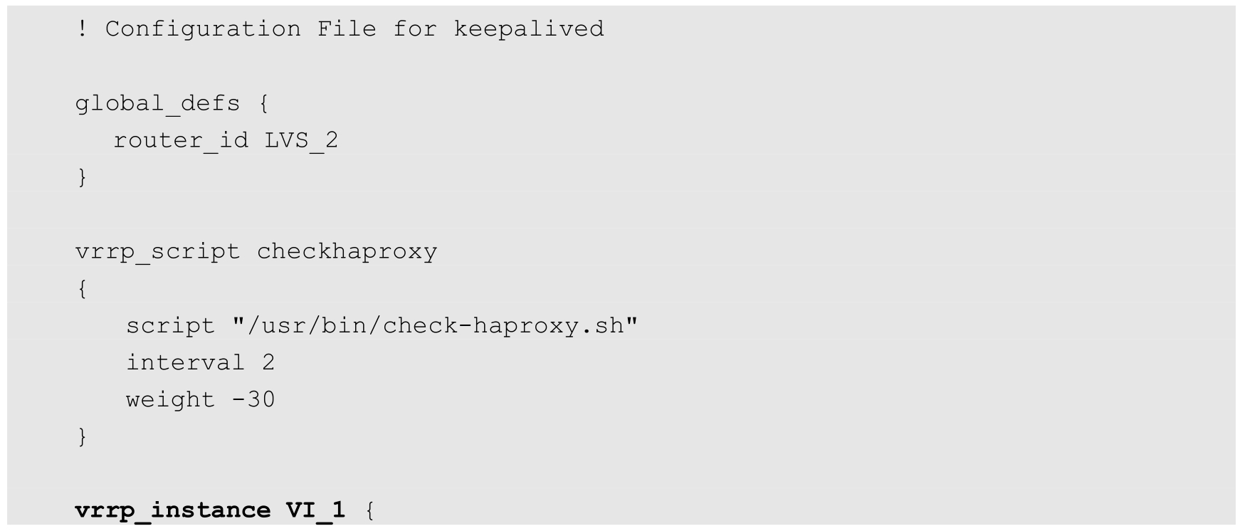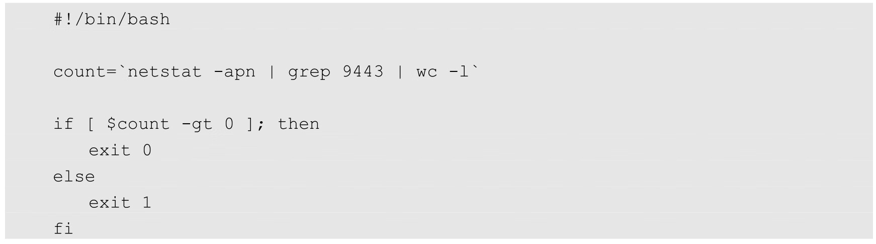 Keepalived需要持续监控HAProxy的运行状态,在某个HAProxy实例运行不正常时,自动切换到运行正常的HAProxy实例上。需要创建一个HAProxy健康检查脚本,定期运行该脚本进行监控,例如新建脚本check-haproxy.sh并将其保存到/usr/bin目录下,内容示例如下: