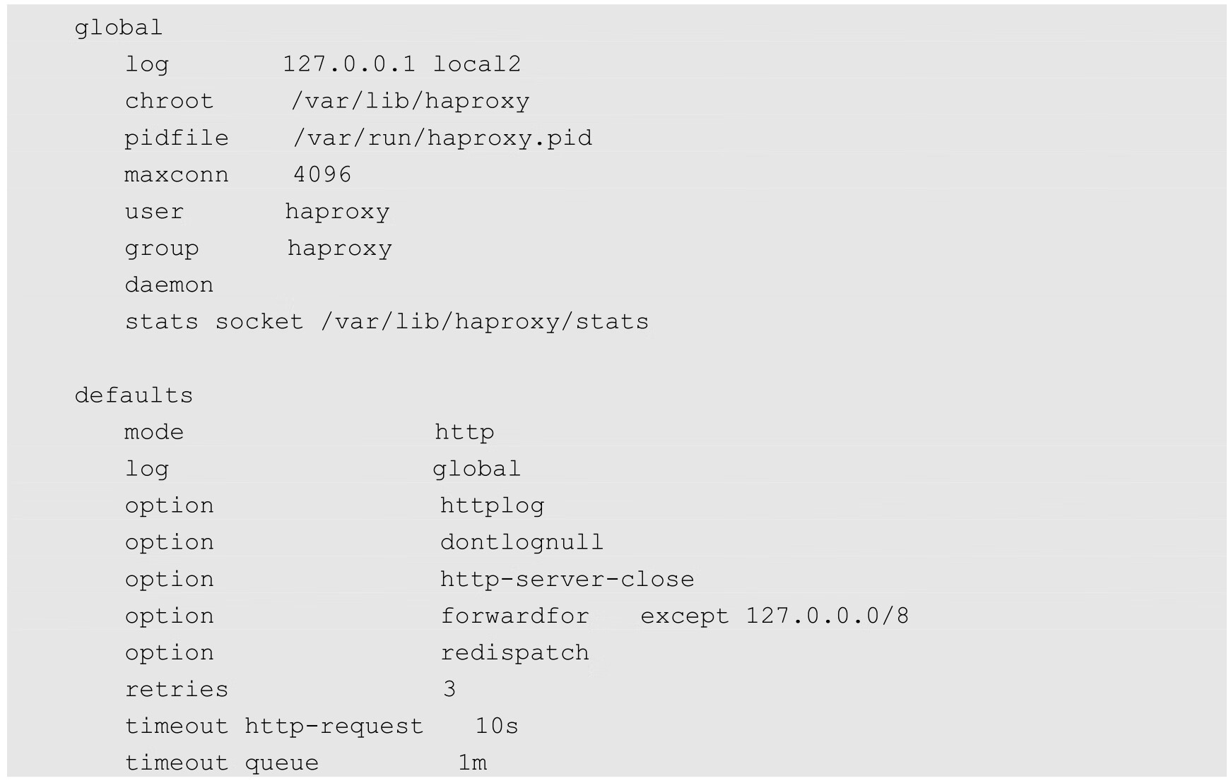 准备HAProxy的配置文件haproxy.cfg,内容示例如下: