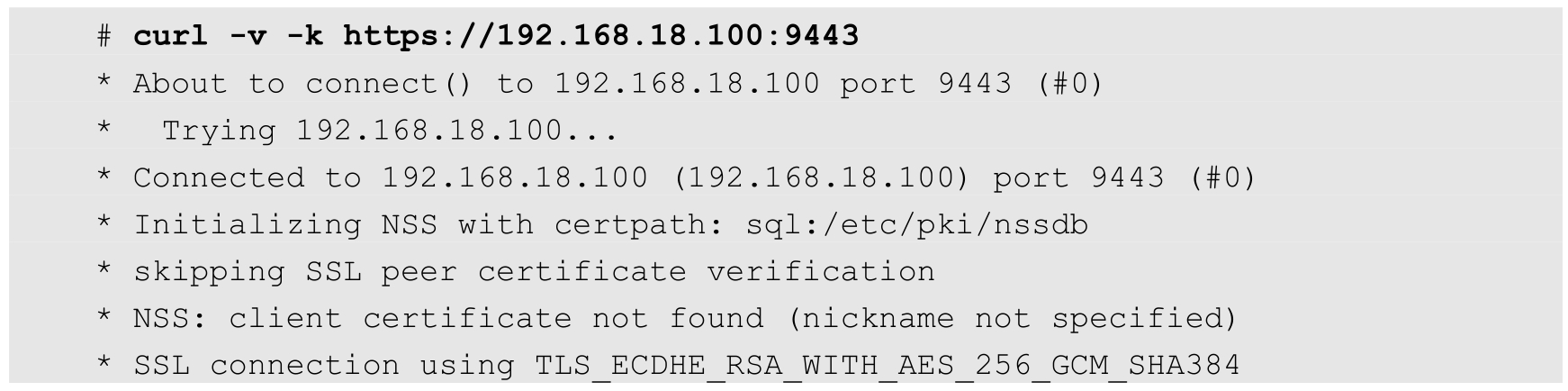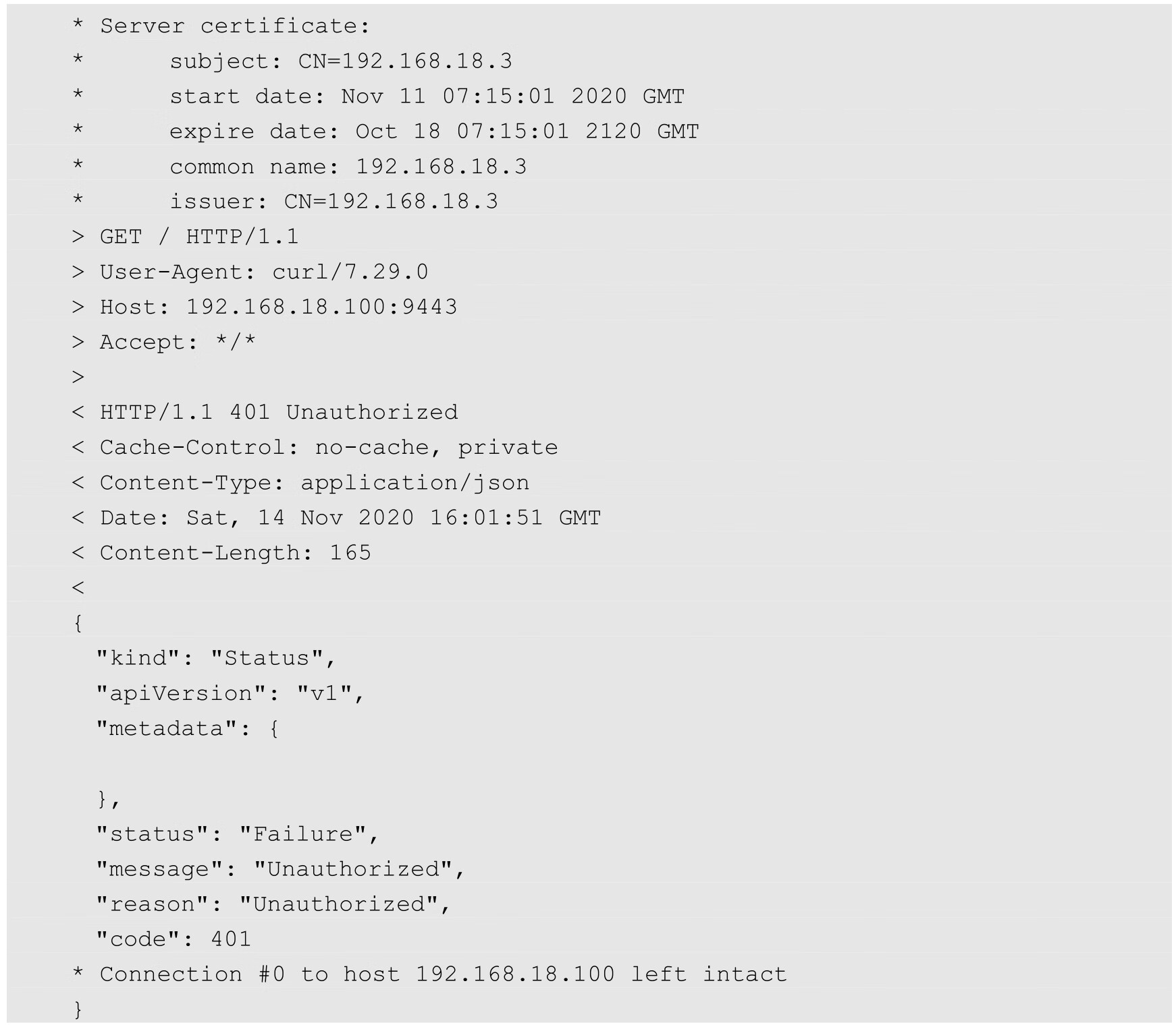使用curl命令即可验证通过HAProxy的192.168.18.100:9443地址是否可以访问到kube-apiserver服务:
