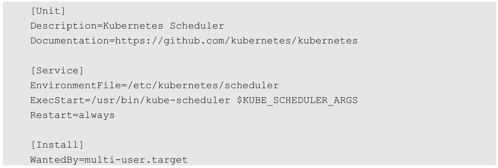 (1)为kube-scheduler服务创建systemd服务配置文件/usr/lib/systemd/system/kube-scheduler.service,内容如下: