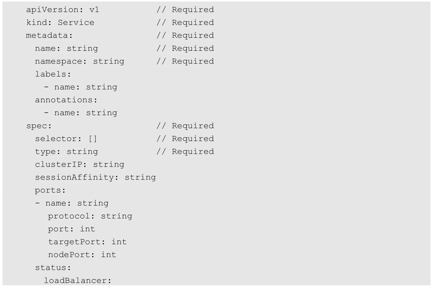 Service的YAML格式的定义文件的完整内容如下:
